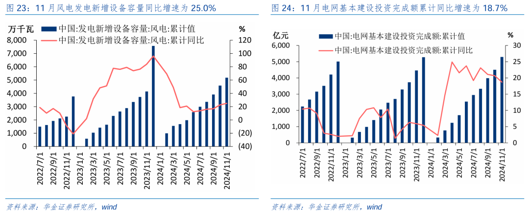 逢低布局基本面可能低位改善的电新、医药等。(1)电新行业:风电方面,11月风电发电新增开辟容量同比增速达25.0%,处于本年下半年来最高;近期海优势电神志得到积极推动,大唐福建平潭海优势电公司长江澳110兆瓦海优势电神志完毕全容量投产发电,风力发电组建设速率加速。储能与电力方面,11月电网基本建设投资完成额累计同比增速为18.7%,较10月小幅放缓;近期多个储能神志更新程度,总限制达5080MWh,总投资超62亿元,包含多个搀杂储能神志以及工生意储能神志等,储能神志更新节拍加速。(2)医药行业:创新药方面,据 Insight 数据库统计上周(12 月 22 日—12 月 28 日)寰球共有 68 款创新药(含改造新)研发程度鼓动到了新阶段,其中 4 款获批上市,7 款通告上市,12 款启动临床,12 款获批临床,22 款通告临床;“十四五”以来,我国国产创新药数目和质料皆升,共有113个国产创新药获批上市,是“十三五”获批新药数目的2.8倍,市集限制达1000亿元,国内医药产业供给侧抓续优化升级。